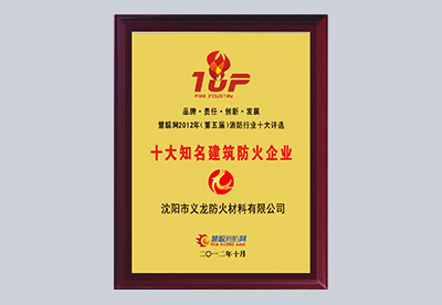 慧聪网2012年(第五届)消防行业十大评选 知名建筑防火企业。